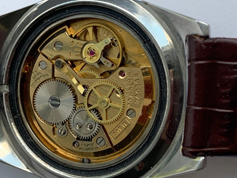 Nice steel cased manual wind Bulova dated to 1969 vintage by case markings. Original dial has an even patina and has a nice vintage look. The Bulova 11BLC movement is working well and keeping time. Photos are magnified and show details not seen by naked eye, the case measures 34 mm across (not including crown) x 42 mm lug to lug.