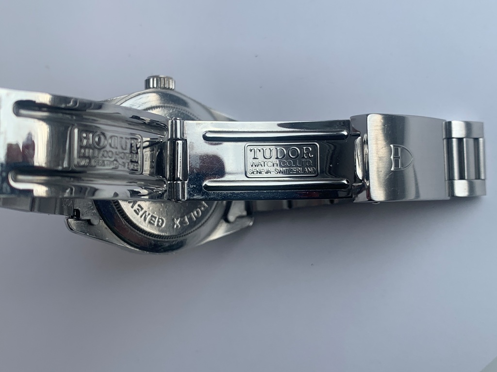 Tudor Prince Oysterdate “Jumbo” ref. 90800 dated by serial number to circa 1978. This is a very desirable vintage Tudor, measuring approximately 38 mm it is larger that most other models on offer from that era, hence the Jumbo nickname. Watch is in excellent cosmetic and working condition and was reported to have been serviced by previous owner in Aug of 2024. The dial is very nice, I believe that it was professionally refinished in recent years. During this era Rolex and Oyster shared many parts, the oyster case on this model was made by and signed by Rolex as is the screw down crown. The ETA automatic movement is a cal 2784 and in great working condition. The Tudor steel bracelet is tight and near mint condition. Photos are magnified and show details not seen by naked eye, the case measures 38 mm across (not including crown x 47 mm lug to lug x 11.5 mm thick.